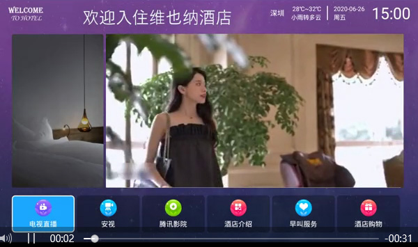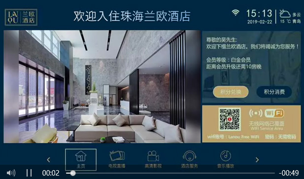 深圳优伯精品酒店,采用我公司IPTV互动电视系统(智能语音控制服务器),实现电视高清直播、高清电影点播、......